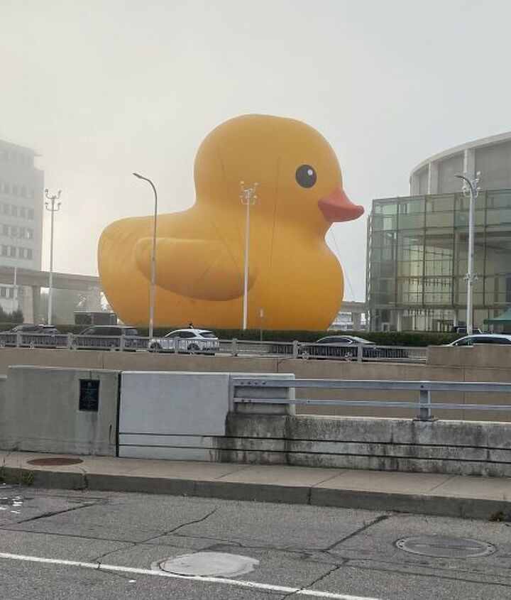 The rubber duck should’ve clued me in. Walking over from the hotel, I spotted the giant version of toy waterfowl hanging out just down the street from Huntington Place. Following that, I got the lovely experience of a Secret Service patdown – a reminder that POTUS was inbound.